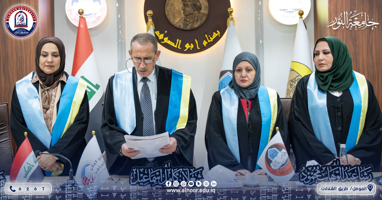تدريسيي من جامعة النور يرأس لجنة مناقشة رسالة ماجستير في جامعة الموصل