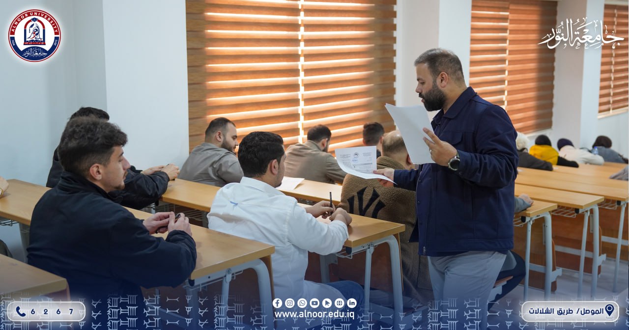 بحضور الأستاذ الدكتور ياسين طه الحجار، رئيس جامعة النور، يواصل طلبة المرحلتين الثانية والثالثة في قسم الإعلام الرقمي بكلية الآداب أداء الامتحانات المشتركة لليوم الثاني، وذلك بإشراف جامعة ذي قار، وسط أجواء تنظيمية متميزة وانسيابية عالية.