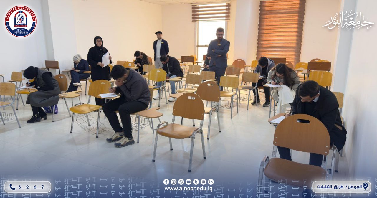 As part of its commitment to raising the academic level of students, the Department of Translation at the College of Arts, Alnoor University, in the presence of the Dean of the College, Professor Dr. Wael Alnahas, and under the direct supervision of the Head of the Department, Assistant Professor Dr. Nada Salem Omar, conducted the written Placement Test for first-year students. The examination aims to assess the linguistic proficiency of newly admitted students and diagnose their academic abilities, thereby helping to guide them toward the appropriate educational track and to develop instructional plans that contribute to enhancing their skills in translation and language. The test was conducted in a well-organized environment, reflecting the College’s and the Department’s keenness to support the educational process and improve its outcomes.