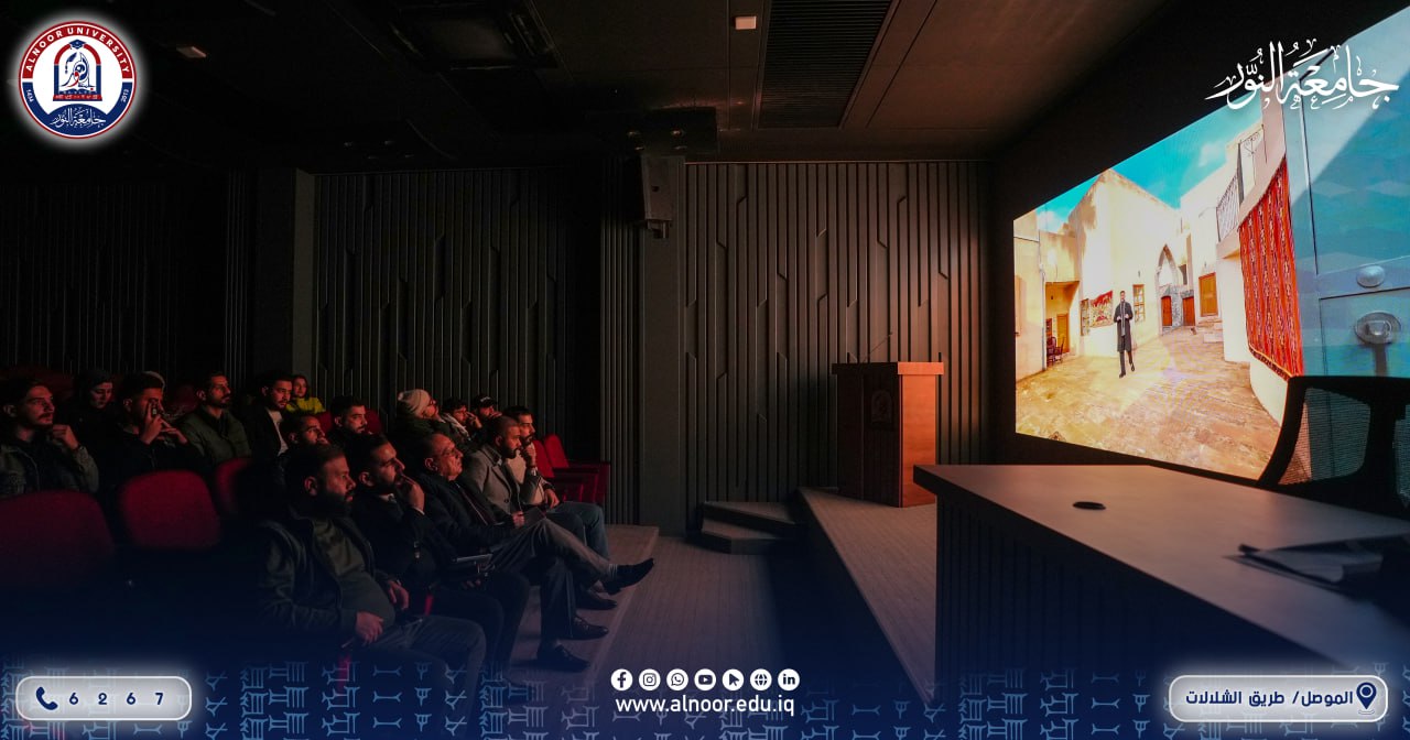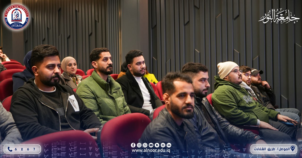 The Digital Media Department at Alnoor University held a specialized discussion session to review and evaluate students’ practical projects for the first semester of the current academic year, attended by Professor Yass Khudair Albayati, Head of the Department, along with the faculty members. This session comes within the university’s commitment to enhancing students’ practical skills and developing their creative abilities in digital media, in line with the university’s philosophy of graduating a generation of media professionals qualified for the labor market and the demands of the digital era. The projects presented during the session covered multiple areas, including short graphic design, multimedia editing, website creation, poster design, and short video production. These works were distinguished by innovation and high technical skills, reflecting the students’ level and their dedication to applying the theoretical knowledge gained during lectures and practical training courses. During the session, each project received constructive critical feedback, with the Head of the Department and faculty members noting that most of the works were at an excellent level, while taking into account the different student levels and their prior experience. The discussions emphasized the importance of further developing these projects to become part of local and regional activities and to participate in national and international competitions, providing students with opportunities to showcase their talents and gain broader practical experience. It was also stressed that the purpose of these sessions is not limited to evaluation alone but includes fostering a spirit of constructive criticism, instilling the concepts of innovation and continuous development, and encouraging students to think creatively beyond classroom boundaries, linking theory with practical application in various digital media fields. The Head of the Department noted that the university pays special attention to modern digital media applications, as the department strives to equip students with the tools and skills that qualify them to work in a dynamic media environment that keeps pace with technological developments and contributes to enriching digital content locally and across the Arab world. In conclusion, the session affirmed that the continuous work on developing these practical projects will contribute to building a solid base of creative digital media professionals capable of producing high-quality content and elevating the university’s name in academic and professional forums.